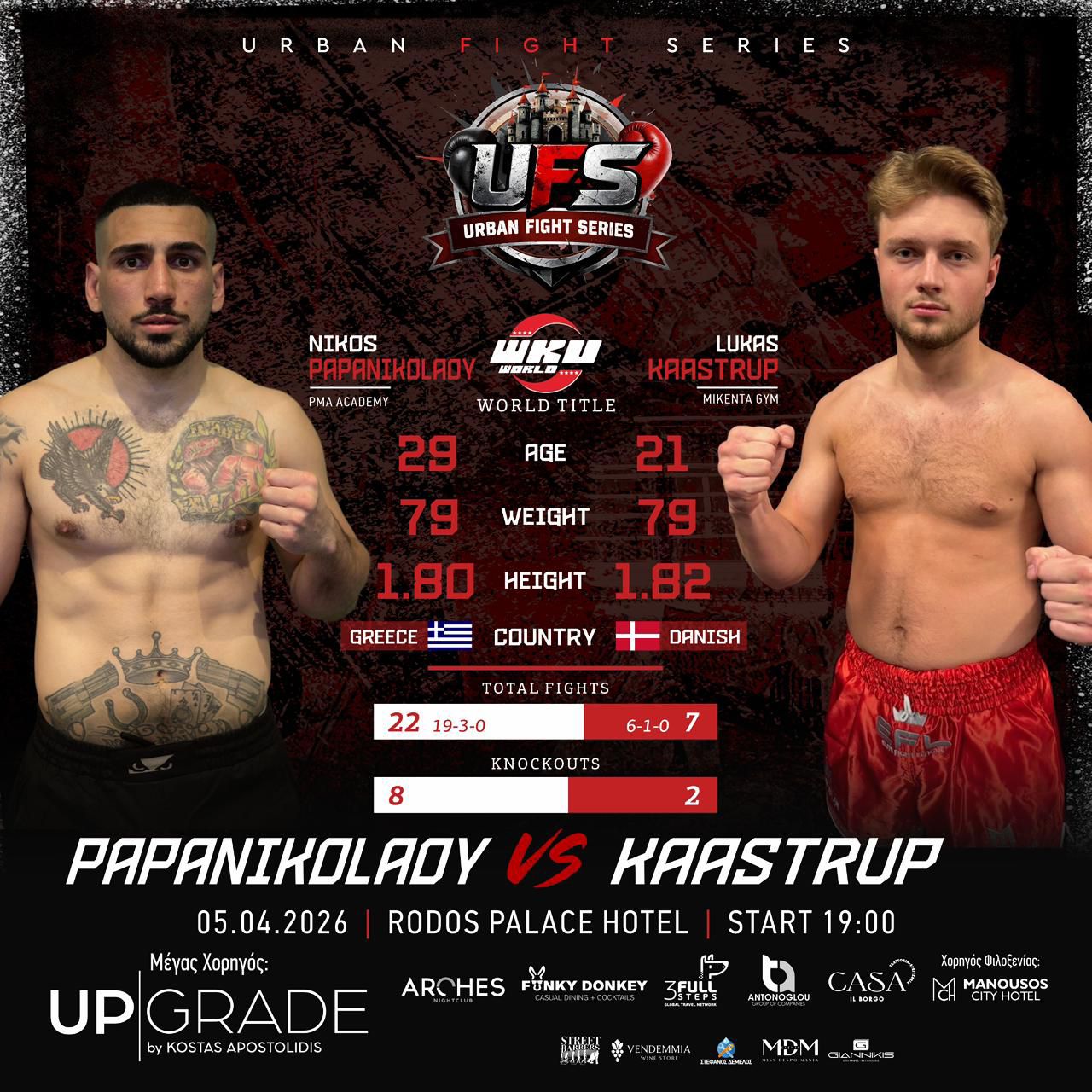 On April 5, 2026, the Urban Fight Series returned to the Rodos Palace Hotel for another thrilling night of action. The main event pitted Greece’s