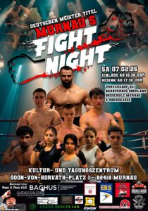Sarah Widmann VS Nisa Durak -58 KGErgebnis: DRAW Leo Darda VS Timur Bardurdinov -65 KGErgebnis: Sieg Timur nach Punkten Martin Reithmeier VS Ahmad Ahmadi -60